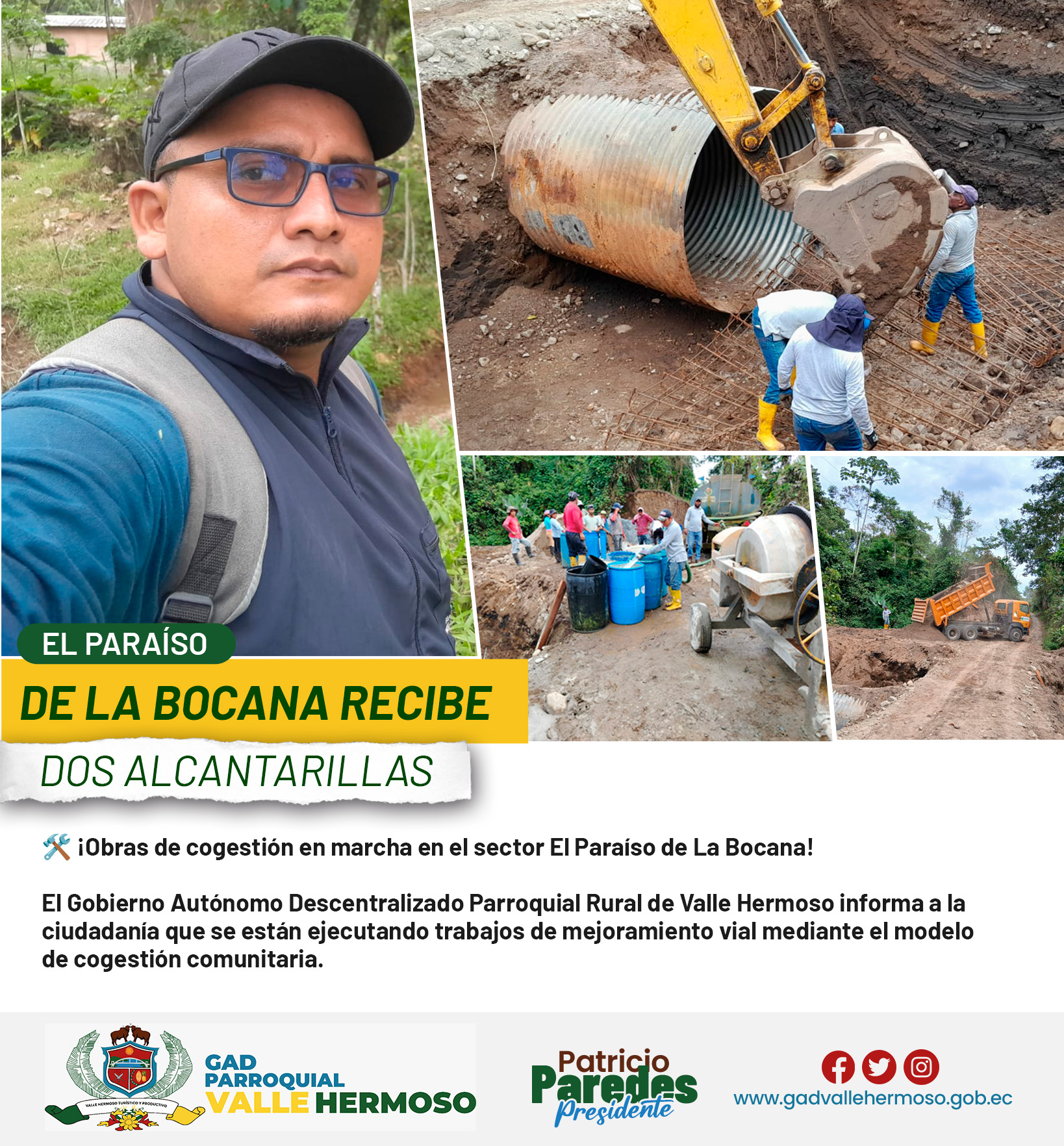 Leer másInvitamos a toda la ciudadanía de la parroquia Valle Hermoso a ser parte de esta socialización de la obra “CONSTRUCCIÓN DEL MURO” a las orillas del Río Blanco.